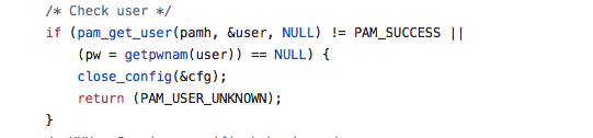 调用pam_get_user获取认证用户信息,检查用户密码信息: