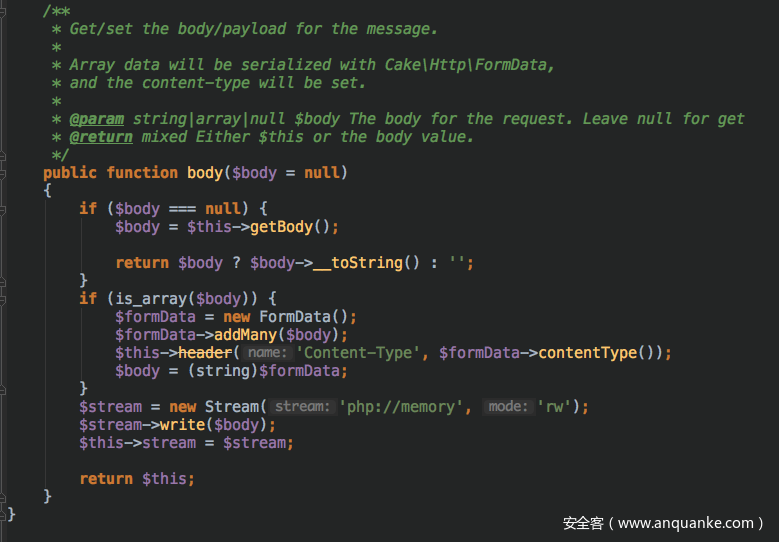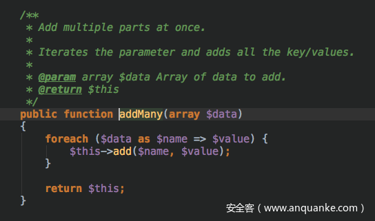 在Request类中,发现了构建请求body的函数,然后跟进到具体FormData类的addMany函数中: