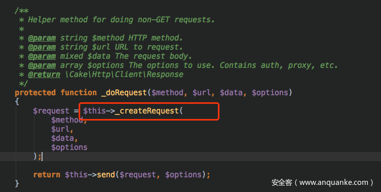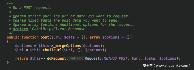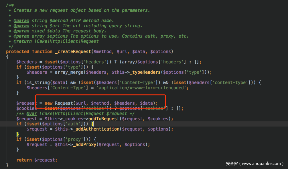 刚开始拿到题目源码,发现使用的是cakephp框架,逻辑代码并不是很多,大体的逻辑是实现了一个http访问器,这里很多参赛者很容易想到ssrf攻击去,但是很快出题者就给出了提示。