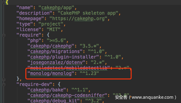 就说明这个题目与ssrf攻击无关,然后通过简单的观察,发现了出题人在使用composer安装php组件的过程中,使用了一个低版本的存在反序列化rce的组件: