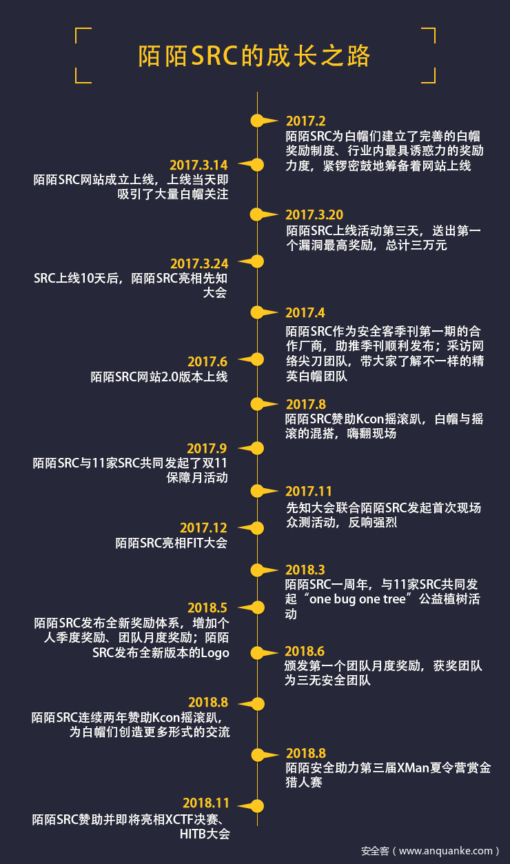 最后,小妹有话说:陌陌安全应急响应中心为感谢广大白帽作出的杰出贡献,陌陌SRC设立年度百万奖金池,单个漏洞最高奖励可达万元,欢迎白帽们入驻陌陌安全,为陌陌安全尽一份力。