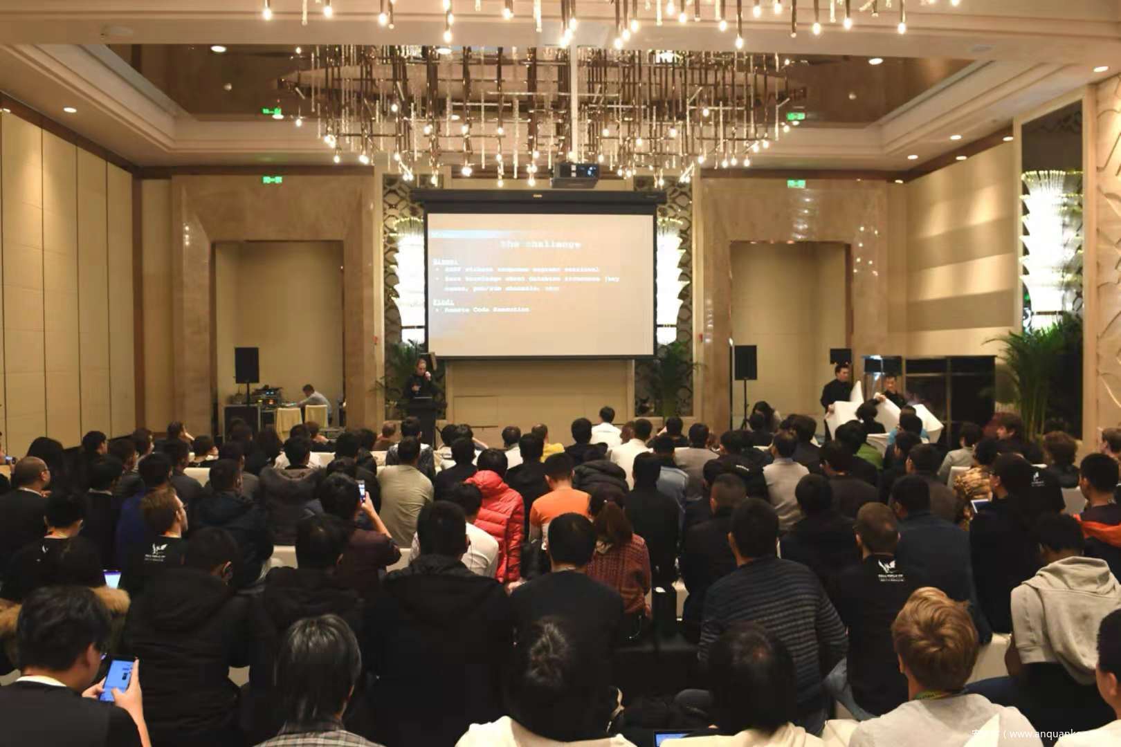 12月3日,大赛还举办了网络安全技术高峰论坛。国内外技术顶尖高手和赛场上的选手在现场进行了技术思路分享,议题涉及容器安全、区块链安全、渗透测试、逆向工程等多个方向。论坛受到网络安全技术爱好者们的喜爱和关注,还未开始会场就已爆满。