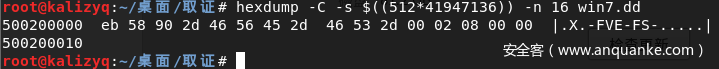从扇区41947136开始的最后一个分区(该硬盘原有两个分区,C分区和D分区,其中C分区未被加密,D分区是经过bitlocker加密的加密卷)是受BitLocker保护的。可以通过查看文件系统头来验证它。发现“-FVE-FS-”签名。