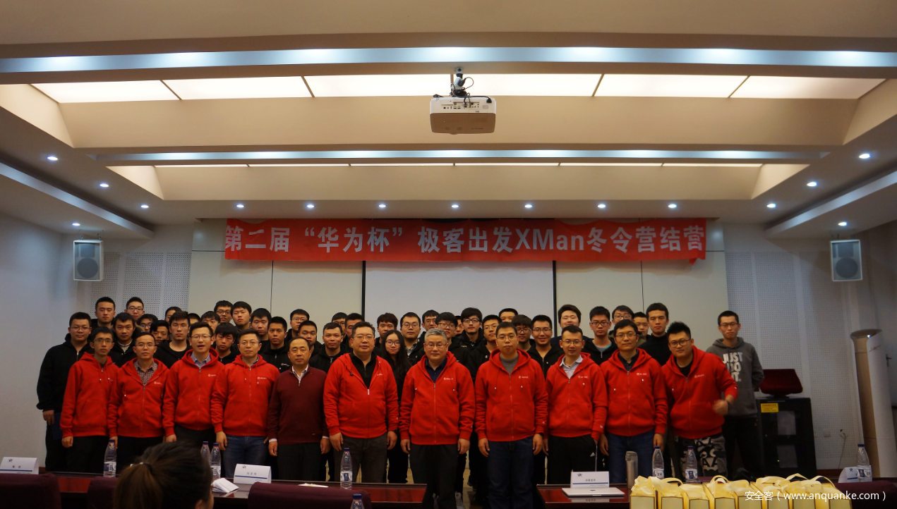 2019年1月24日下午16点半,随着XMan冬令营结营典礼结束宣告着第二届“华为杯”极客出发XMan冬令营圆满落幕。本次冬令营为期七天,由XCTF国际联赛组委会主办,哈尔滨工业大学、赛宁网安承办,华为独家冠名赞助。