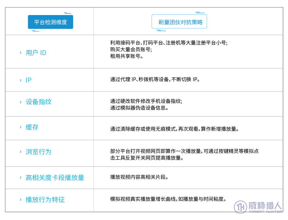 视频平台与刷量黑灰产的攻防对抗一直存在,以下为威胁猎人建议的反欺诈策略: