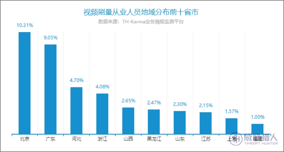 威胁猎人通过长期监测视频刷量黑灰产业务,接触视频刷量相关群体,并主动接洽了多个大型的刷量团伙和工作室,了解到某大型工作室每月维护服务器和囤买账号的费用高达百万以上,但很快可以回本,推测目前从事视频刷量的黑灰产从业人员数十万人,年产值数十亿元。
