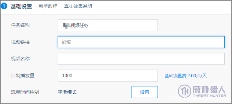 - 流量需求用户发布任务:以某款流量工具为例,介绍任务发布基础设置: