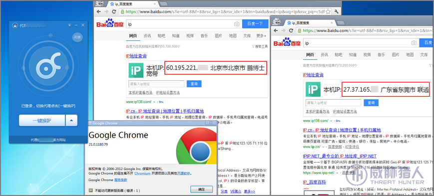 为解决单IP封禁问题,某代理客户端内置了老版本Chrome浏览器,可以多开浏览器,并且可以给每个浏览器分配不同的代理IP,如下图所示: