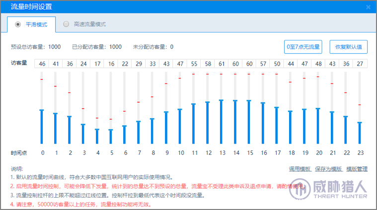- 平滑模式:系统0至23点之间自动分配预刷量,一般建议默认,适合不是短时间内急需大量播放量的客户;