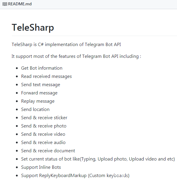 从去年开始出现利用Telegram软件协议的木马,今年有更多的恶意软件作者开始滥用Telegram软件协议。滥用Telegram软件协议的IRRAT和TeleRAT[7]恶意软件家族接连被曝光,并且还出现了与之前使用Telegram Bot API方式不同的HeroRat[8]恶意软件家族,它使用了名为Telesharp[9]的开源项目,它可以使用C#语言创建Telegram Bot,目前这个开源项目已经不再维护。