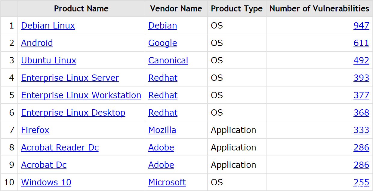 [52]Top 50 Products By Total Number Of “Distinct” Vulnerabilities in 2018:https://www.cvedetails.com/top-50-products.php?year=2018