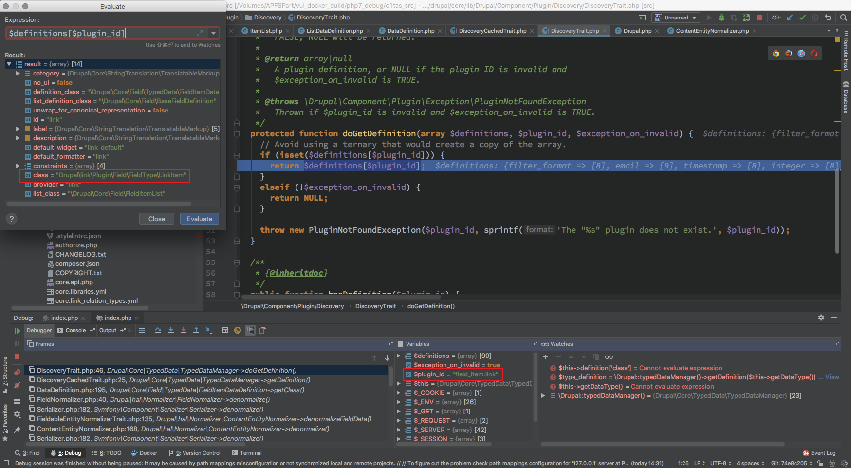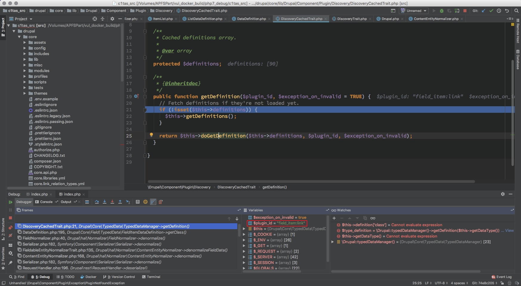 对应的 $definitions 是 DiscoveryCachedTrait 中保存的 $definitions
