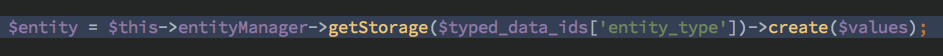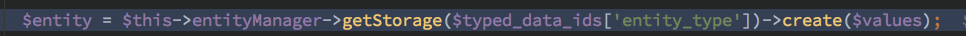 而 getStorage 之后再通过 create 创建出对应的 entity 实体,进一步通过 ContentEntityNormalizer 的 denormalizeFieldData 进行处理 等效调用 FieldableEntityNormalizerTrait 中的 denormalizeFieldData