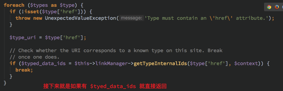 那么基本可以确定此处就是为什么限定 _links->type 字段的原因了,那么要确定 $entity_type 的值就得从漏洞触发的过滤出发了
