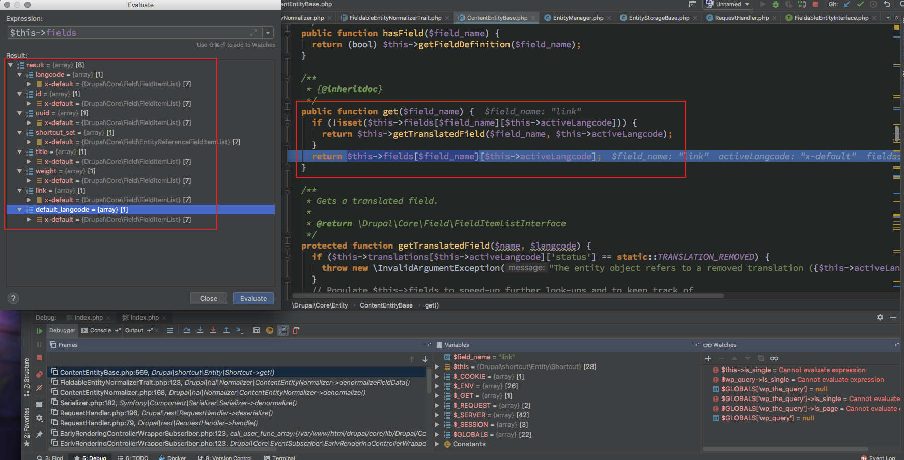 从而问题就变成了 $entity->get($field_name); 如何才能返回