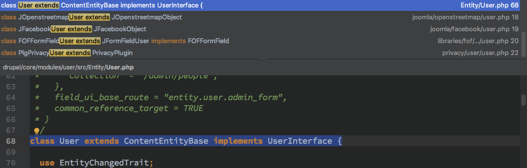 还进行了针对 DrupaluserEntityUser 的继承关系检测