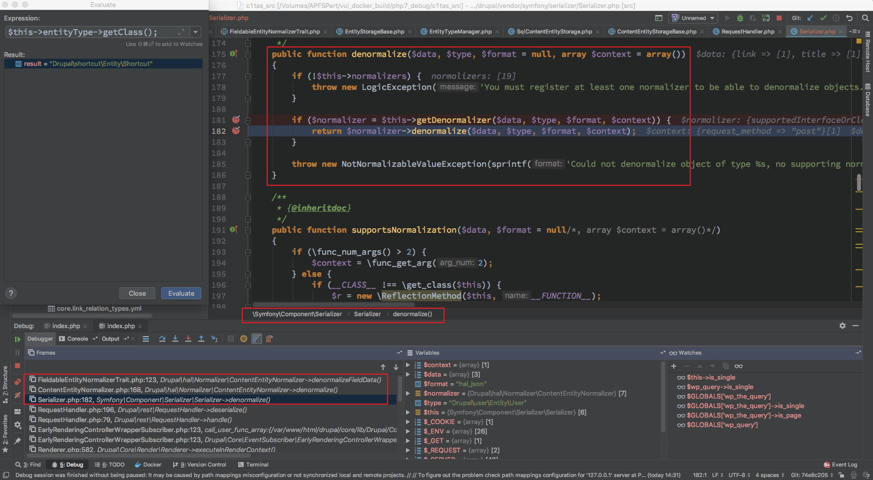 而在刚才阅读 denormalizeFieldData 的代码的时候就不难明白, drupal 中所有的序列化调用都是 symfony 的 DenormalizerInterface 的实现