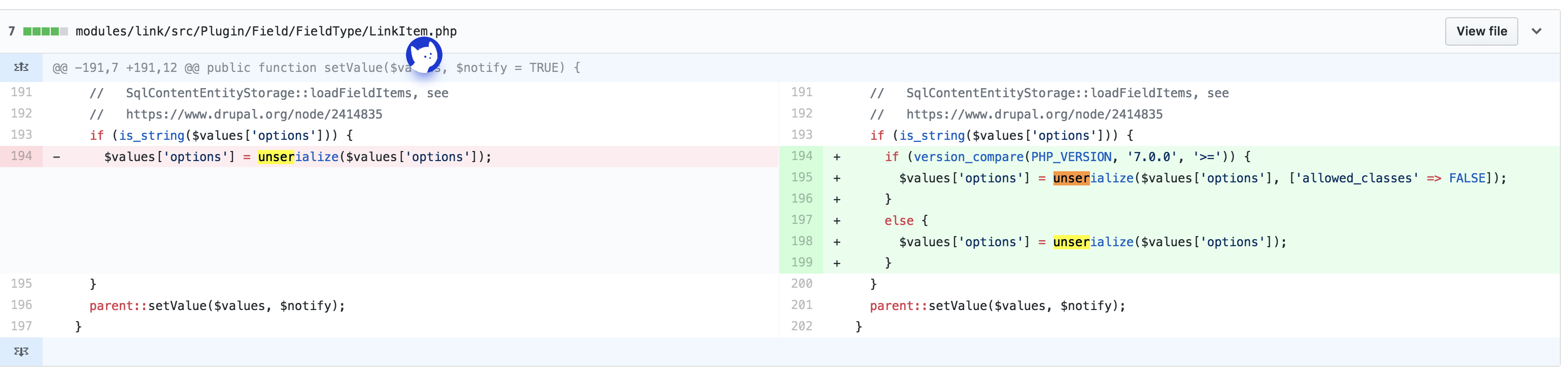 成功到了 git diff 能观测到的漏洞触发点