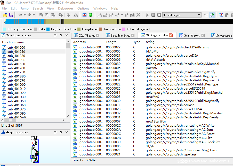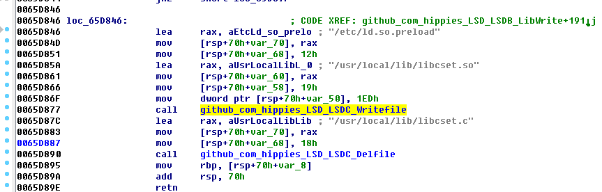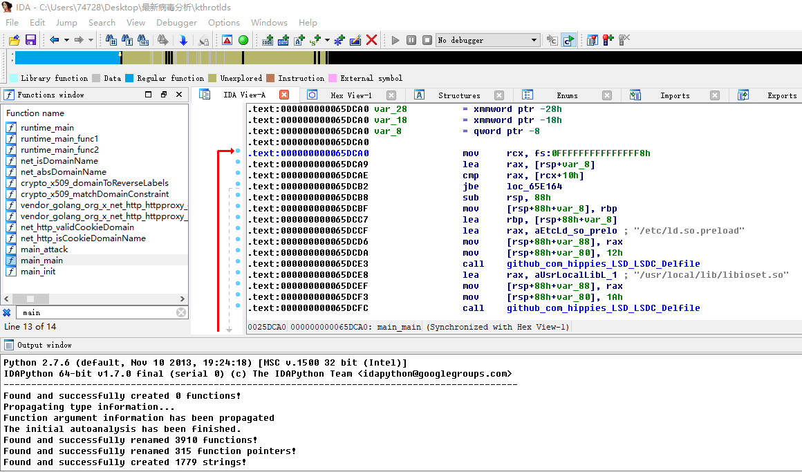 函数名都是随机字符串,看下字符串,推断程序应该是使用golang写的,和之前的差不多。