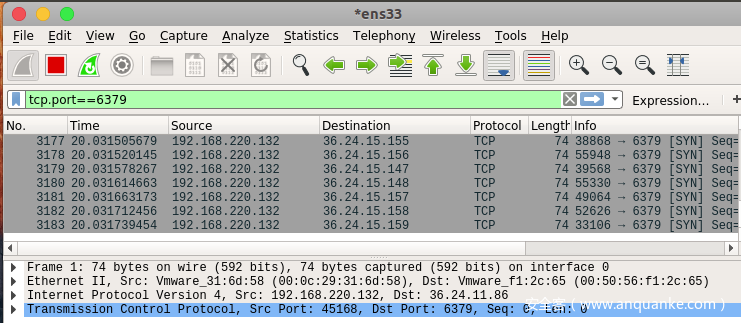 2、进行ssh爆破及redis攻击,目的是进行横向病毒传播,扩大挖矿僵尸网络的势力