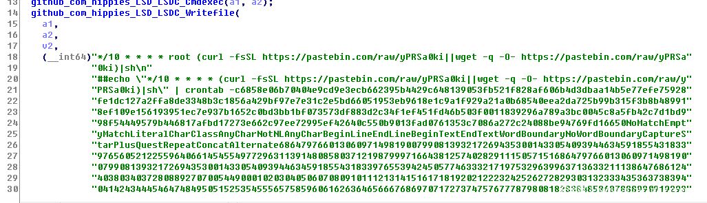 接着是进行计划任务的写入操作,释放挖矿木马ksoftirqds,及更新操作。