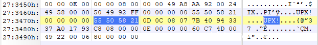 通过分析发现,该病毒文件还是采用了upx壳,只是对其中的魔数进行了修改: