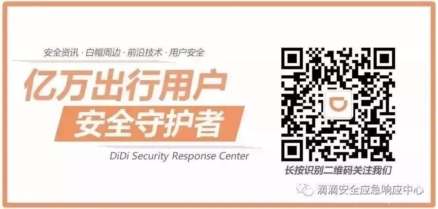 滴滴安全将不忘初心,与业界安全专家、友商、白帽子们并肩作战安全同行,为营造互联网安全出行生态而继续努力。