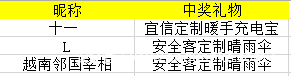 中奖名单公布