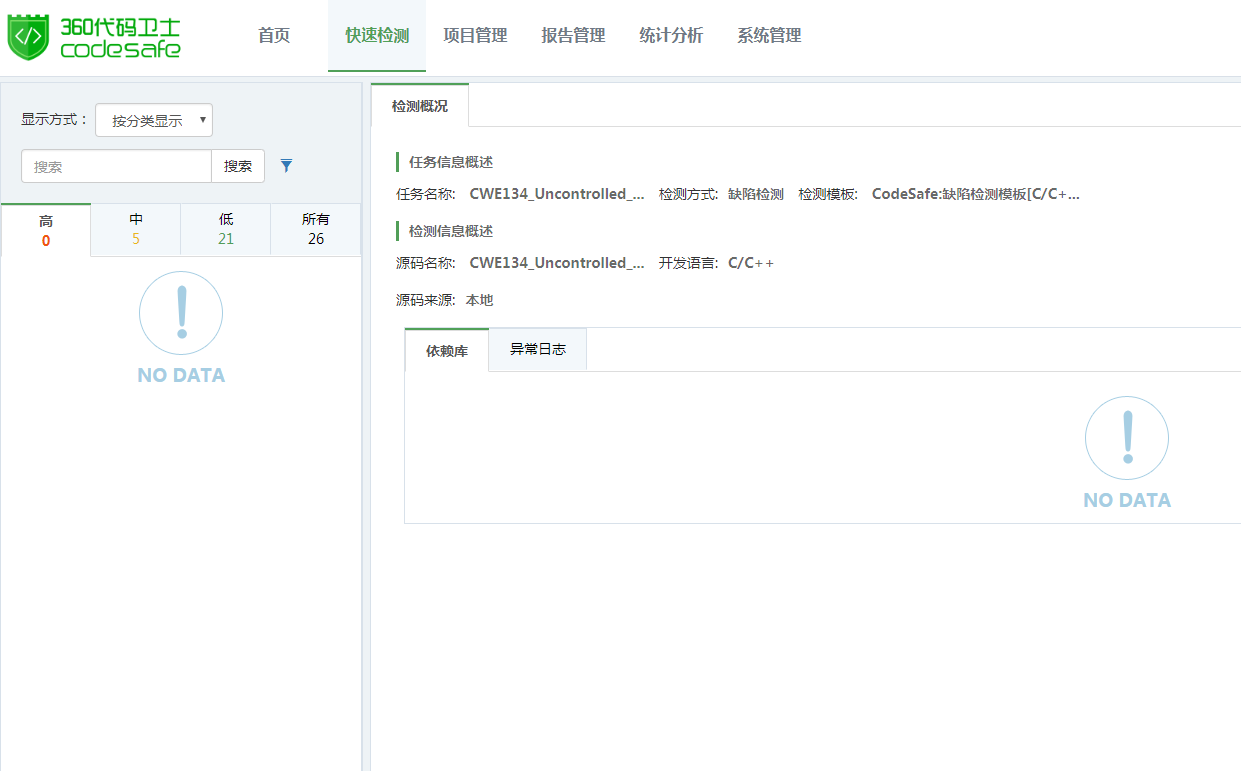 使用360代码卫士对修复后的代码进行检测,可以看到已不存在“被污染的格式化字符串”缺陷。如图2: