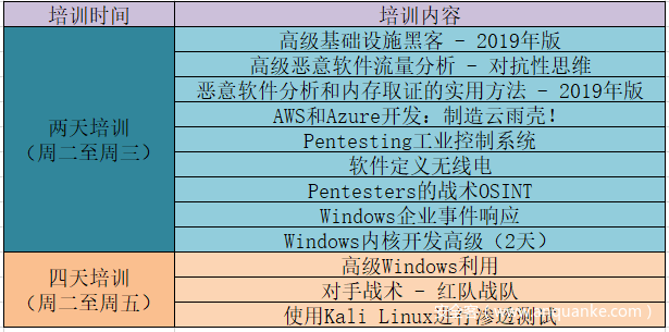 通常专为 Black Hat 设计,培训提供实践技术技能培养机会。Black Hat 培训由安全专家讲授,目标是定义和捍卫明天的INFOSEC环境。