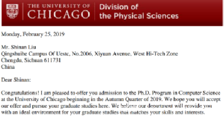 刘诗楠同学即将进入芝加哥大学SAND Lab读博