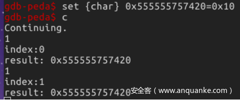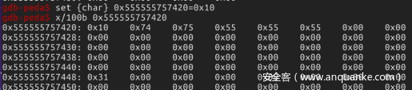 1.$ set {unsigned char} 0x555555757420 =0x70 #修改内存