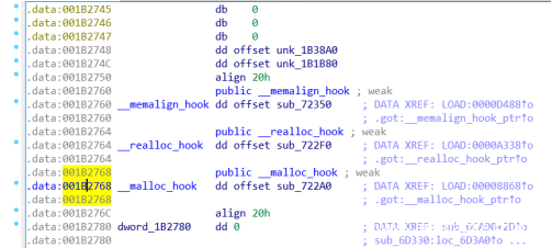 所以我们需要找到malloc_hook函数的地址