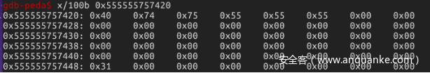 所以堆块分布为 堆块0:{ {头部:0x555555757418-~1f} 0x555555757420->~47 }