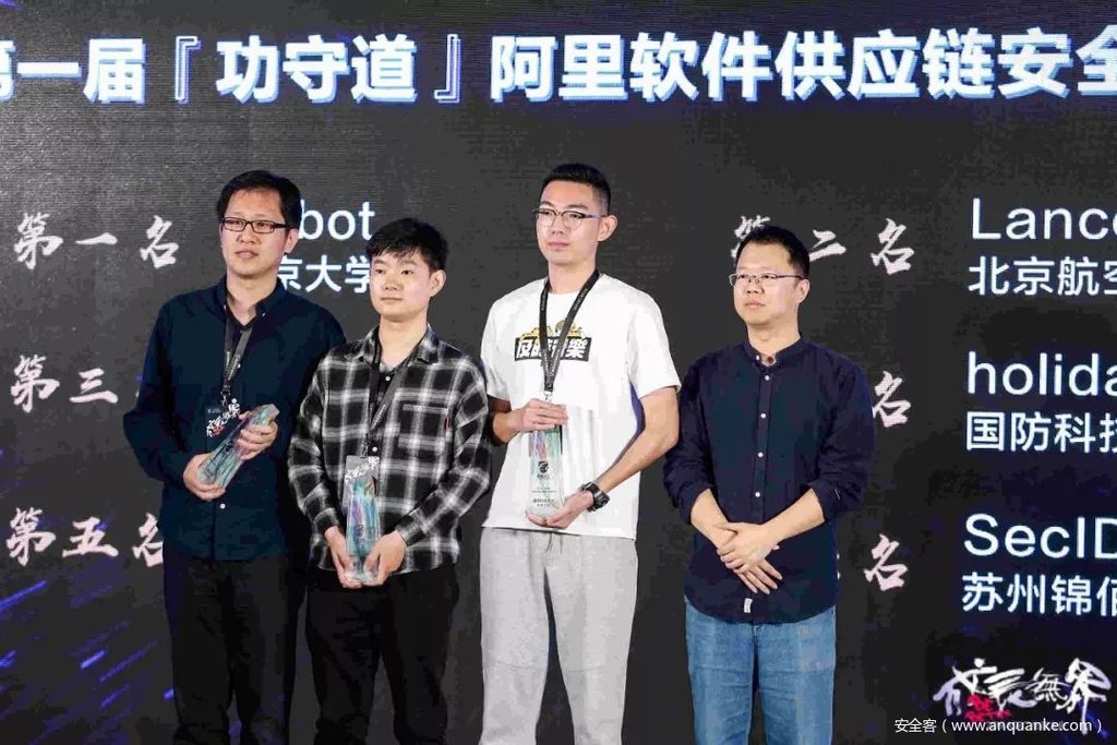 阿里安全举办的首届“功守道·软件供应链安全大赛”,自2018年5月启动,历时9个月。经过前期三个分站赛季的探索孵化,在底层软件基础设施、办公开发运维终端软件、线上服务应用等三个方向,沉淀了对软件供应链威胁的系统化建模,贡献出第一份海量的威胁样本集,衍生出供应链威胁的形势研判,筛选出经得住考验的应对方案。上图为资深安全专家为获奖队伍颁奖。