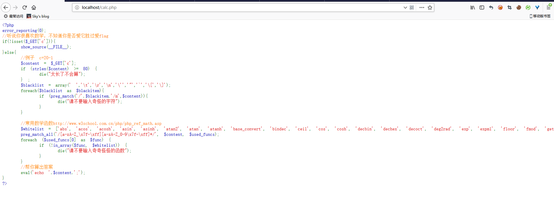 再思考一下可以发现 ,因为我们有了base_convert(xxx,xx,xx)函数,所以我们可以调用php得任意函数,经过大佬点播最后发现可以使用hex2bin和bin2hex函数。