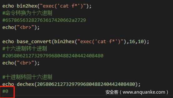 所以最后exec(“cat f*”)就是base_convert(696468,10,36)(“base_convert(15941,10,36) dechex(15){0}*”)