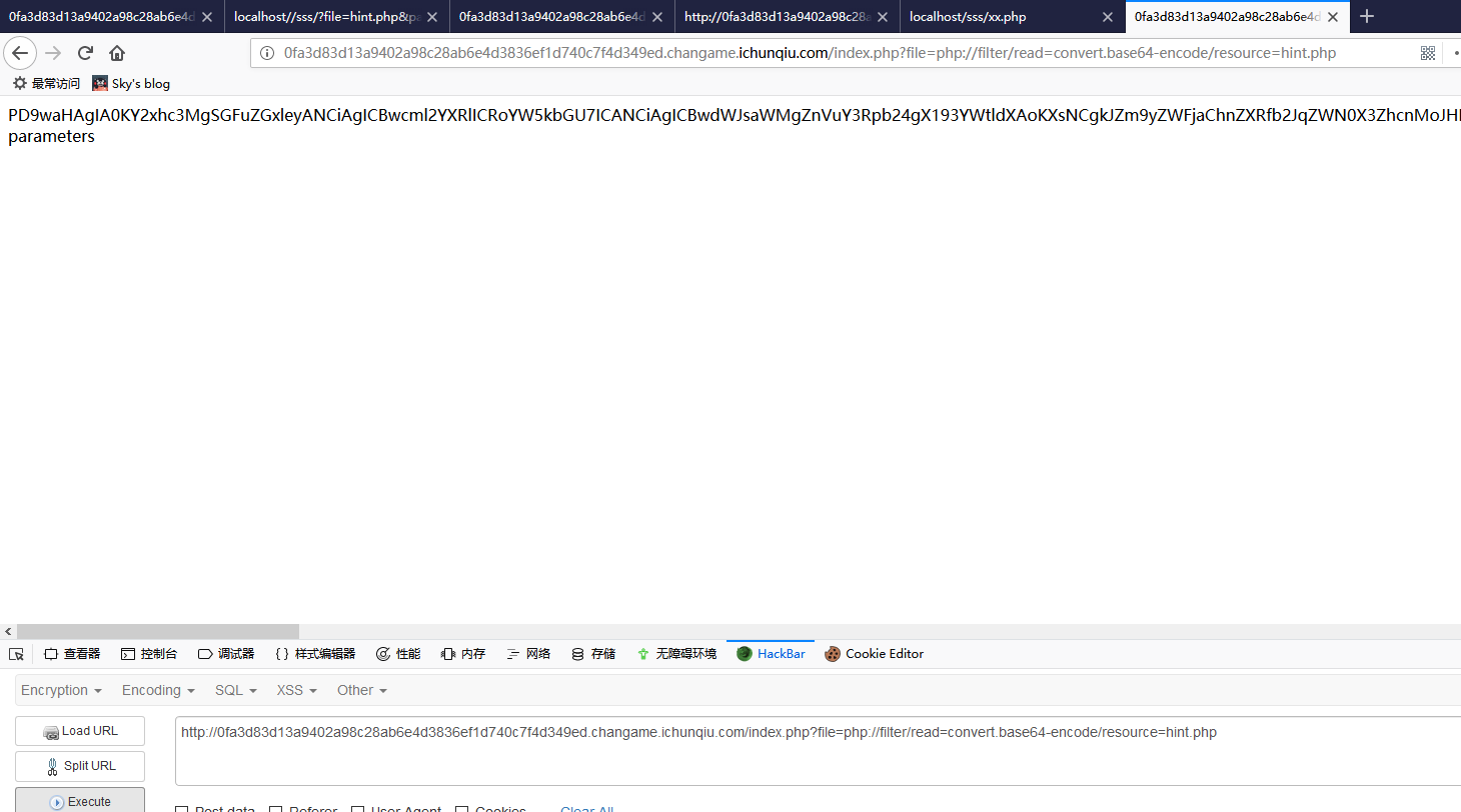 提示需要传参数,这里存在LFI漏洞,常规操作伪协议读一下源码: