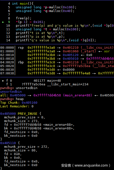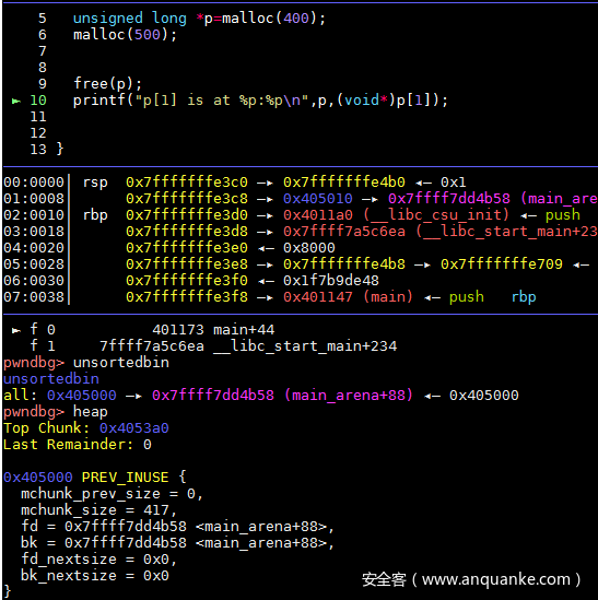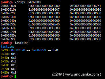 方法一就是how2heap内的源码,未做修改,直接看下过程。