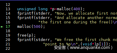 由于how2heap的源代码内还有说明,为了调试看的简单点,做了一些删减