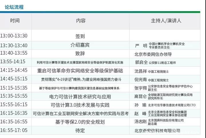 论坛名称:可信计算3.0筑牢等级保护防线高峰论坛