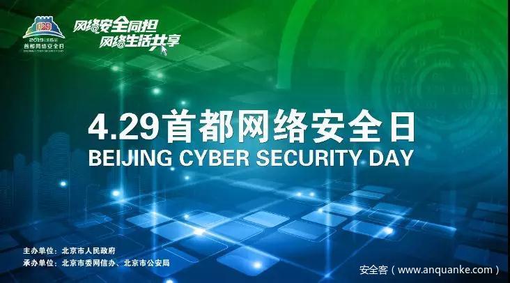 智慧引领未来。在这个春暖花开的季节里,由北京市人民政府指导,北京市委网信办、北京市公安局主办的2019年第六届“4.29首都网络安全日”系列宣传活动即将于4月28日-30日在北京展览馆举行,安全客也准备好精美的奖品和活动等待大家的到来~