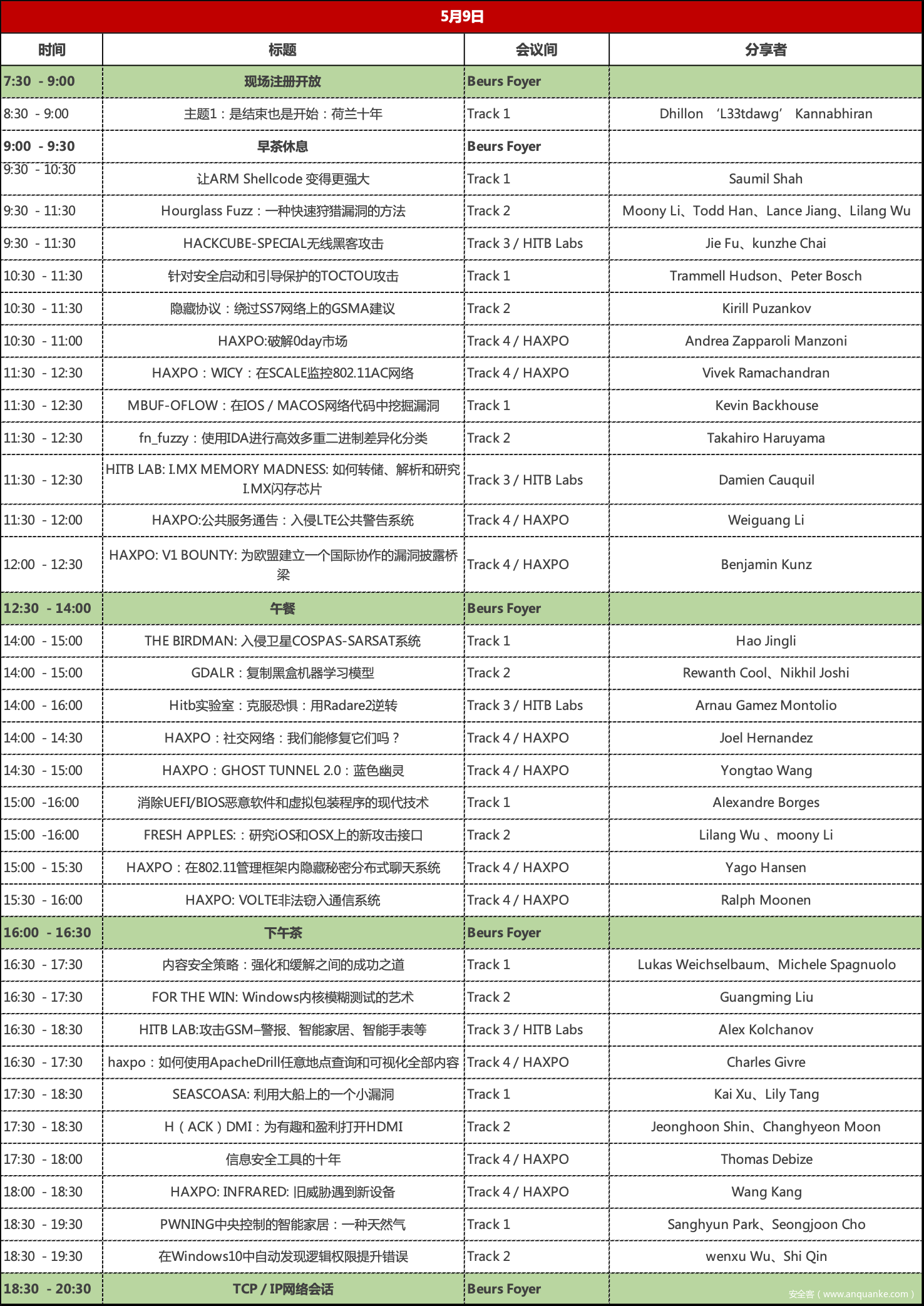 9日和10日的大会将在阿姆斯特丹股票交易所(Beurs van Berlage)举行,请关注安全客届时的现场报道~同时,我们还将联手5位来自360的安全研究员,对他们的议题进行最权威的内容解读!敬请期待!