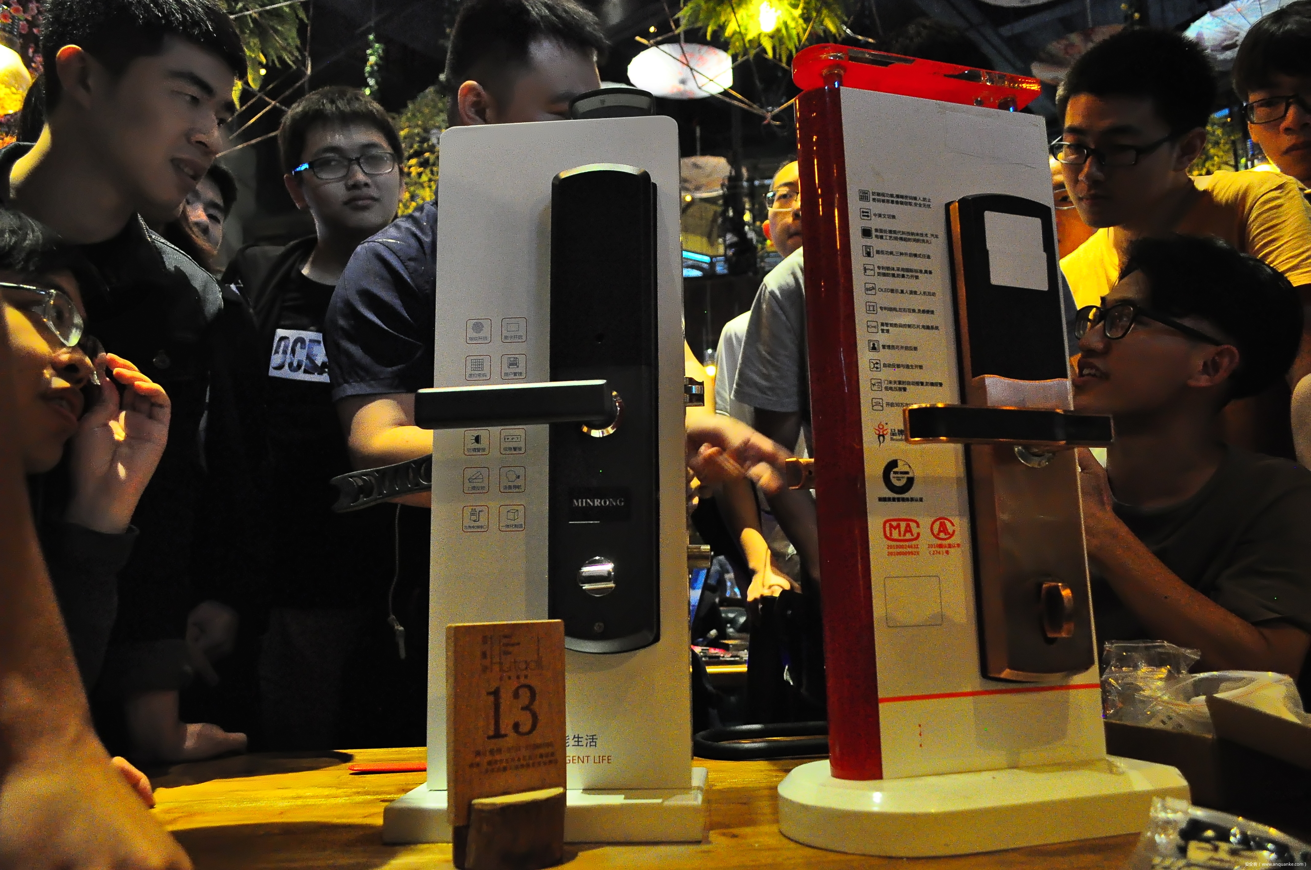 360 UNICORN GROUP独角兽核心伙伴冰尘、永不消逝的电波(代号)和数智安全实验室(原伏宸安全实验室)同时进行。前者通过剖析电子通讯,展示通讯安全中存在的漏洞,带来《频段监听》《GSM HACKING》。后者带来《智能锁具破解演示》,进行WIFI攻击演示和黑客硬件打造,零基础亲手打造了一个网络流量工具和RFID频率识别卡片。现场以炫技者为中心,自然形成360度人群环绕,极客们炙热而真诚的眼神透露出他们对黑客领域的热爱。