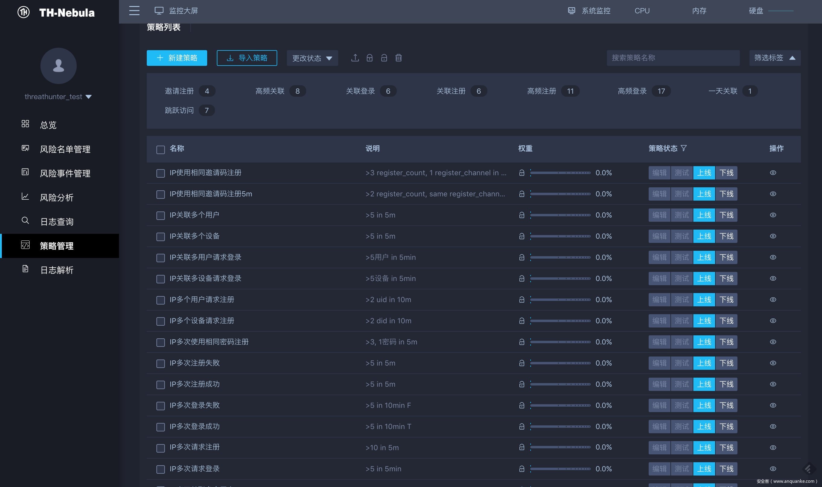 以上就是通过部署TH-Nebula开源风控系统,配置防撞库策略的整套流程。
