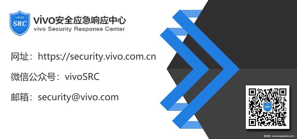 欢迎安全专家们踊跃参与活动,全部活动结束后一周内,vivoSRC官方微信公众号将公布获奖名单,敬请关注。如有疑问或建议,可通过微信公众号(ID:vivoSRC)后台留言反馈。期待您的参加!