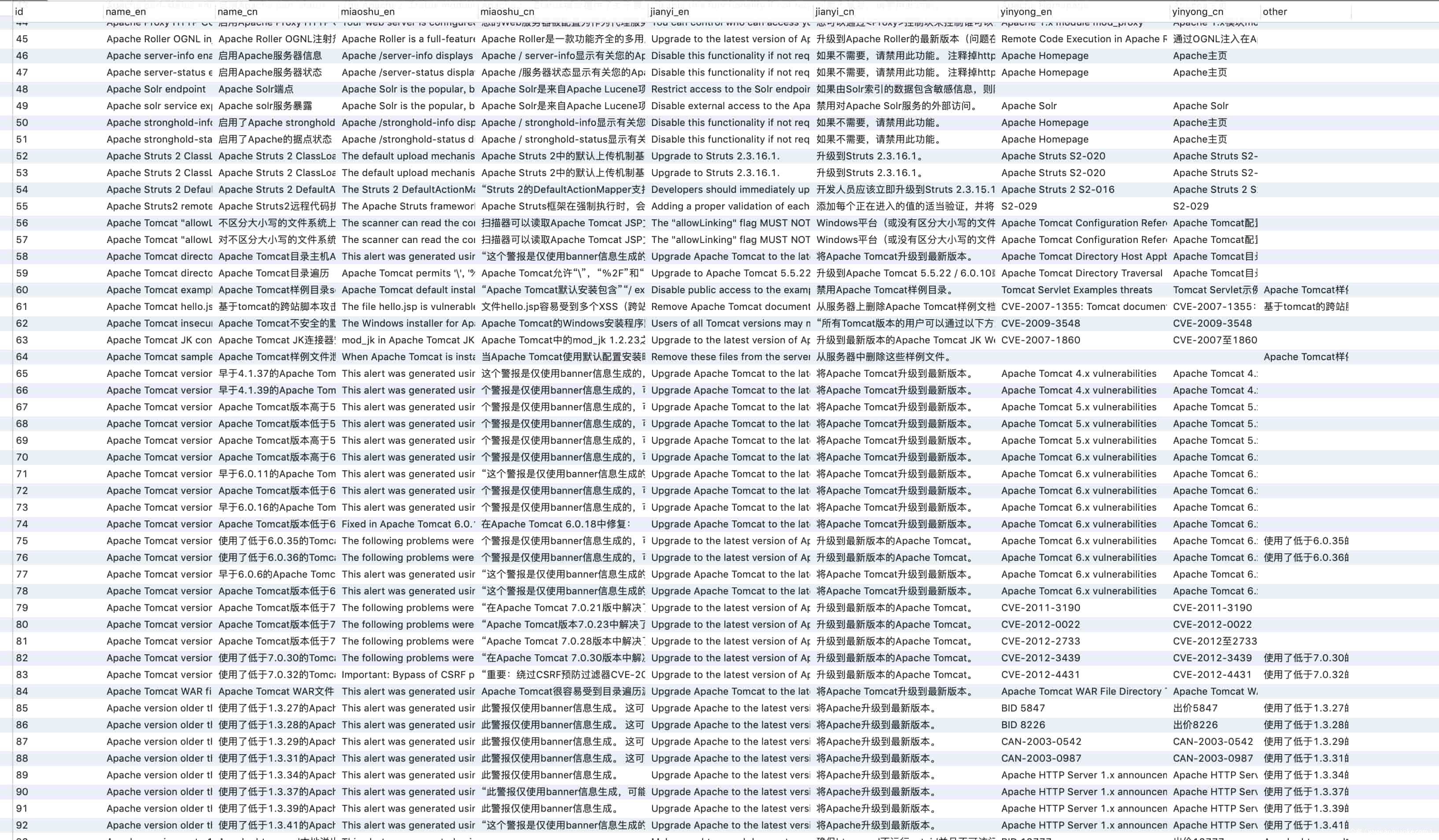 汉化后的数据库可从这个项目中获取,https://github.com/TideSec/WDScanner,在数据库文件的vul_cn表中。