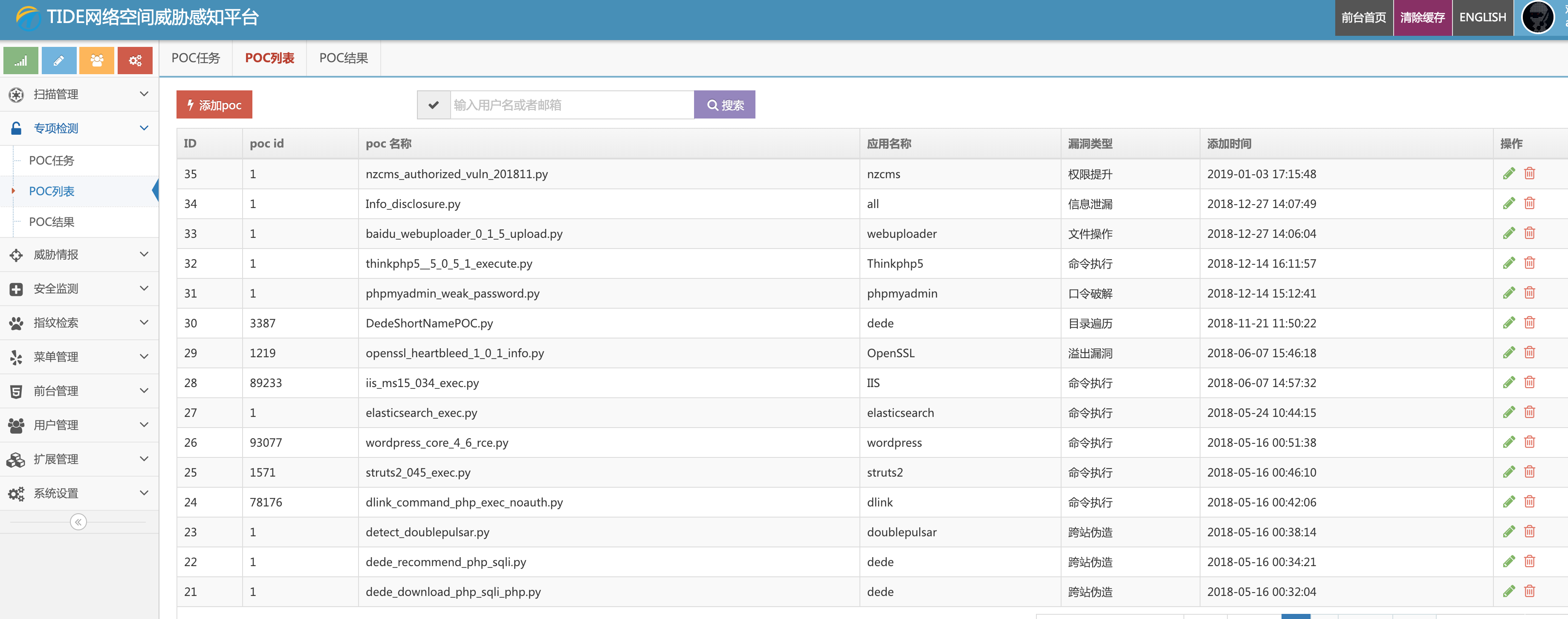 1、POC检测使用了成熟的POC框架POCSUITE,修改了一些借口,和Tide能完美对接,改写了很多插件,让检测更自动化。