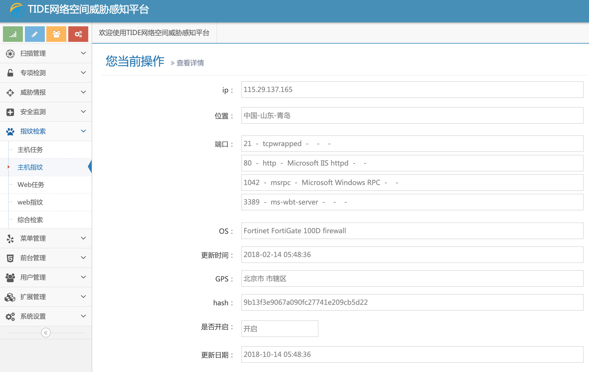 - 主机指纹详情